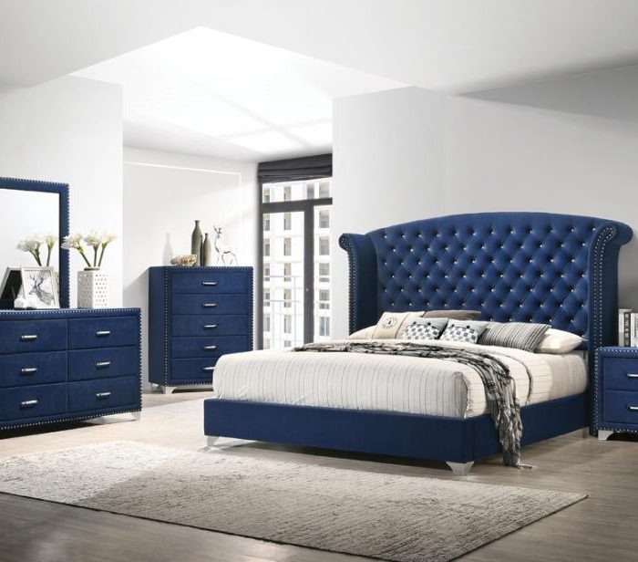 Melody 4-Piece Eastern King Tufted Upholstered Bedroom Set Pacific Blu