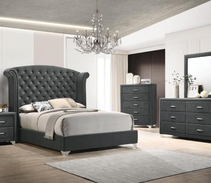 Melody 5-Piece Eastern King Tufted Upholstered Bedroom Set Grey