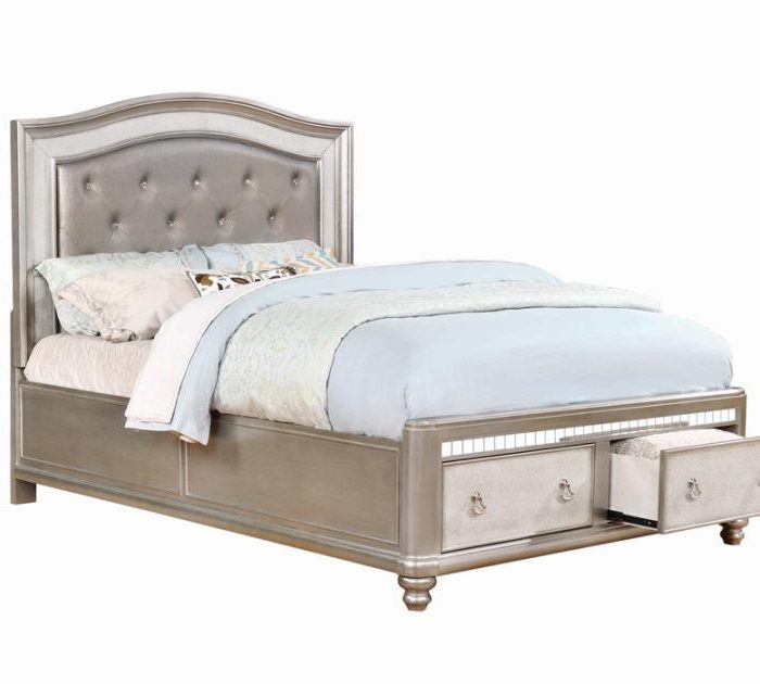Bling Game Upholstered Storage Queen Bed Metallic Platinum