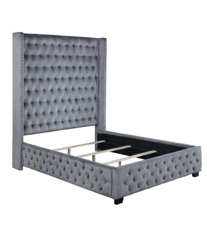 Salford Queen Panel Bed Metallic Sterling And Charcoal Grey