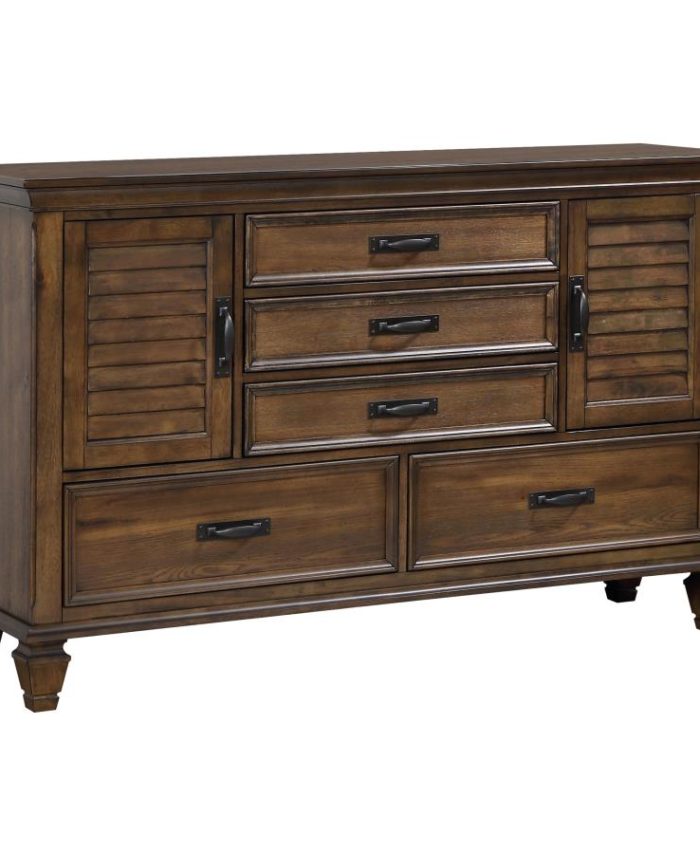 Franco 5-Drawer Dresser With 2 Louvered Doors Burnished Oak