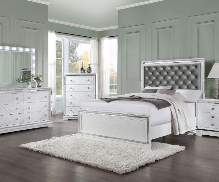 5-Piece Upholstered Tufted Bedroom Set White Queen