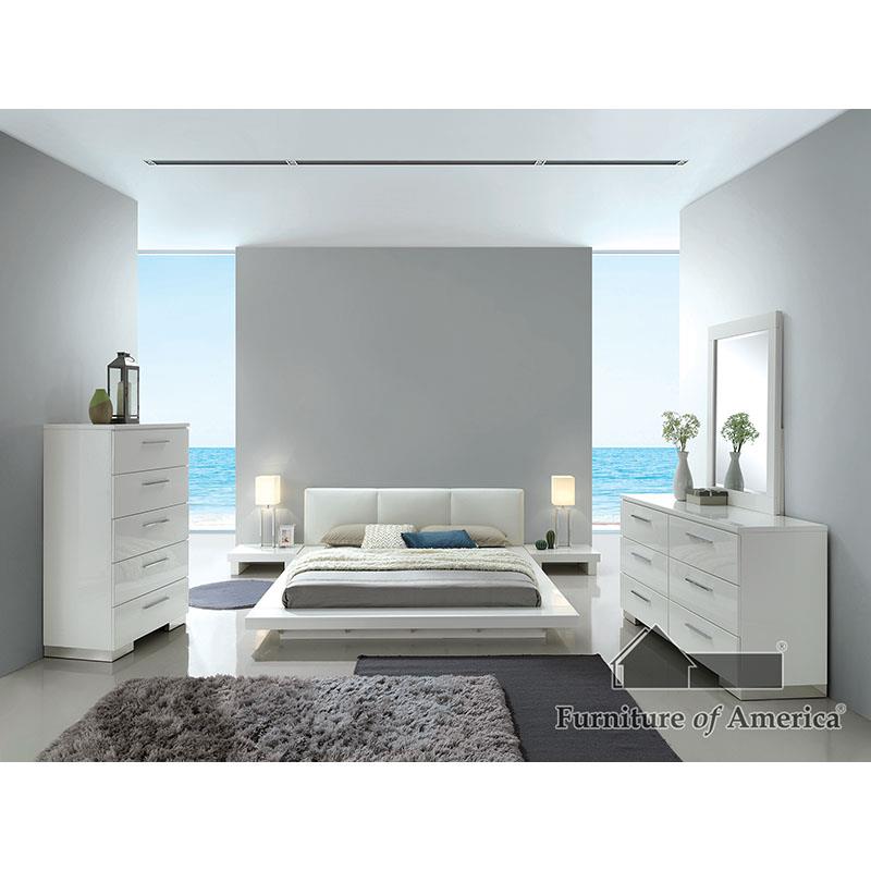 If you’re a fan of sleek minimalism this bedroom set will give you exactly what you want. A low profile design keeps the bed floating just above the ground. The design is the only embellishment necessary, its form and function flawlessly entwined. The night stands are low lying and flush with the bed platform so it feels uniform and balanced. The dresser and chest add a touch of chrome to the high gloss finishes to break up the shapes without compromising on modern sensibilities.