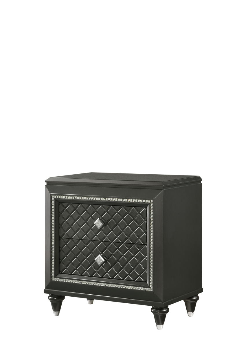 Features Giovani Collection Upholstered headboard Diamond shaped drawer pulls Shiny silver accents Contemporary style Grey Finish Included: B7900-Q Queen Bed (headboard, footboard, side rails) B7900-2 Night Stand B7900-1 Dresser B7900-11 Mirror Optional: B7900-K King Size Bed B7900-2 Night Stand B7900-4 Chest B7900-94 Bench Dimensions: Queen Size Bed: 70″ W 97″ D 41.5″ H Dresser: 65″ W 17.5″ D 40.8″ H Mirror: 46.8″ W 1.4″ D 36.4″ H Nightstand: 29.6″ W 17.5″ D 28″ H King Size Bed: 83.5″ W 87.5″ D 72.5″ H Chest: 39.3″ W 17″ D 50″ H Bench: 53.9″ W 18.1″ D 18.9″ H