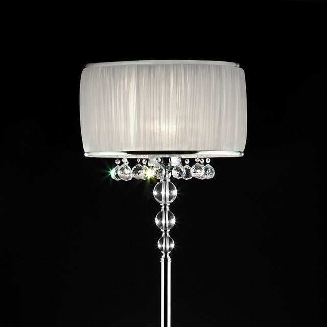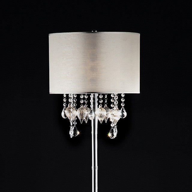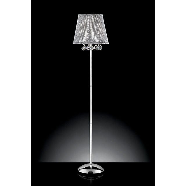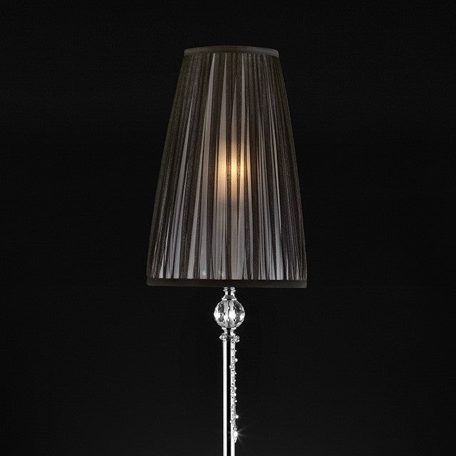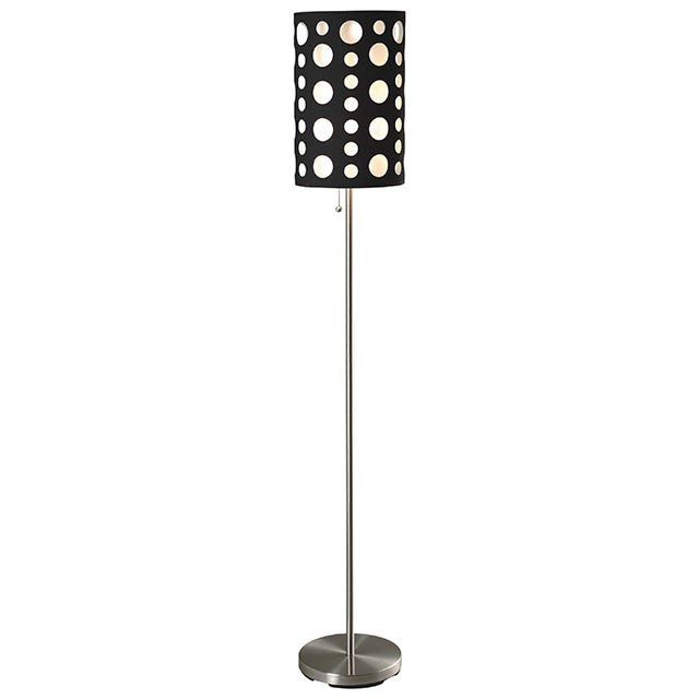 Chrome accents against the dark, black finish create drama in this exotic-looking floor lamp. The base features a unique weave design sure to make an impression.