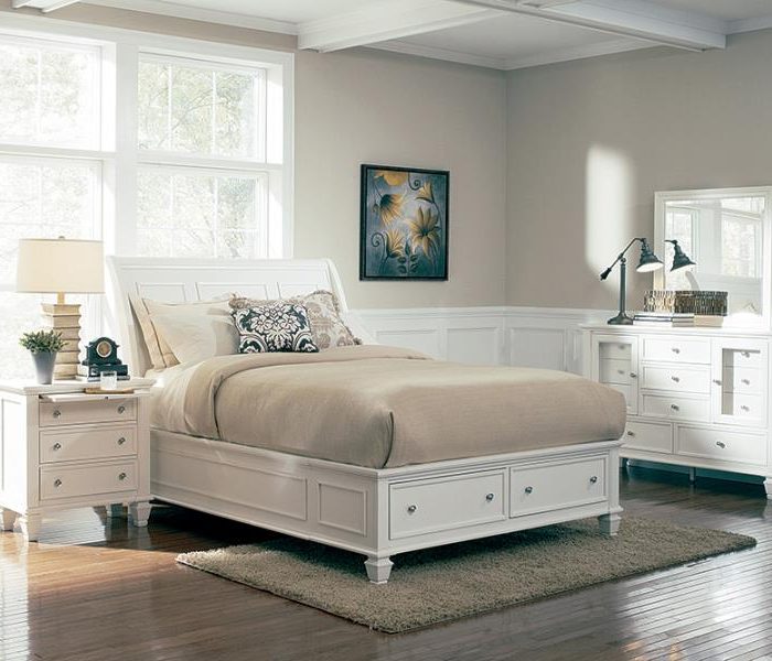 4-Piece Beach Storage Bedroom Set With Sleigh Headboard California Kin