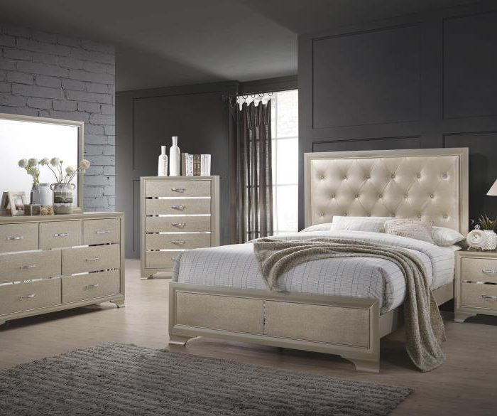 4-Piece Bedroom Set Metallic Champagne Queen