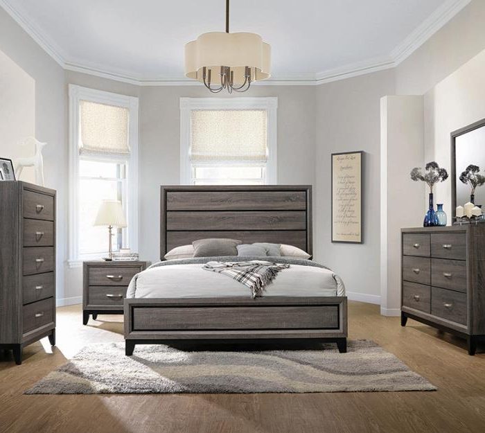 4-Piece Beach Storage Bedroom Set With Sleigh Headboard King