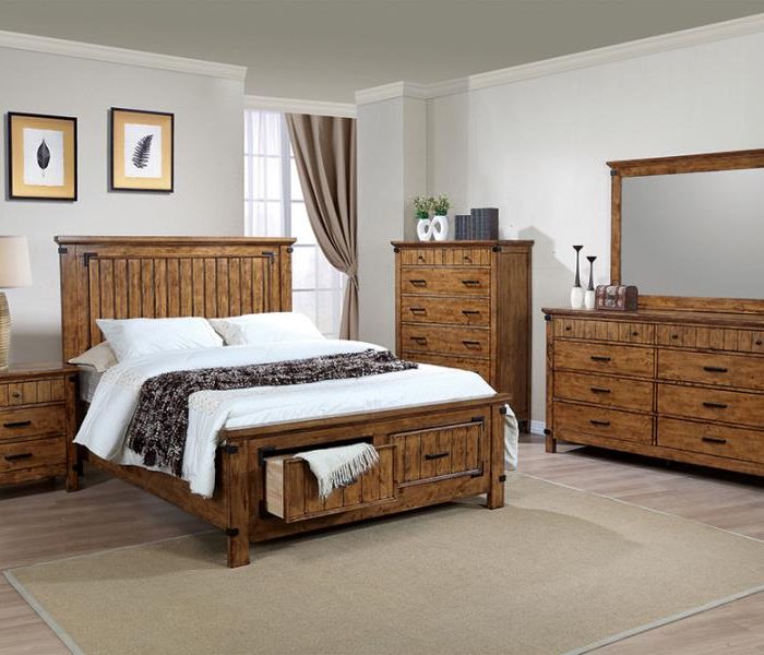 4-Piece Storage Bedroom Set Rustic Honey