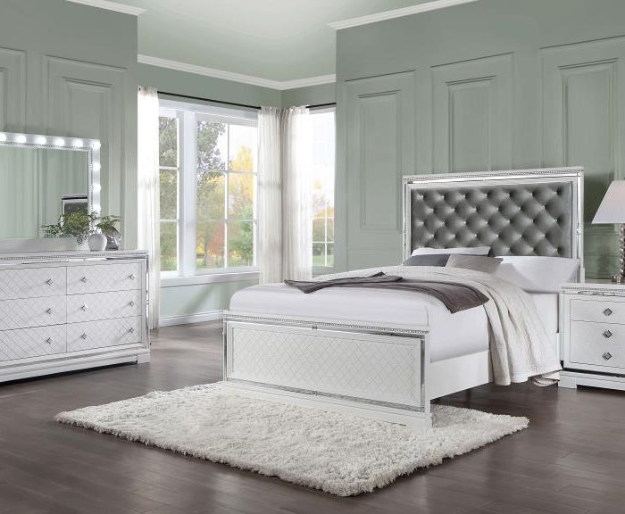 4-Piece Upholstered Tufted Bedroom Set White Queen