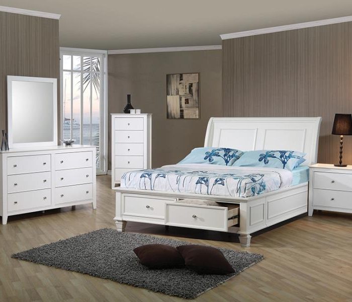 4-Piece Storage Bedroom Set With Sleigh Headboard Buttermilk